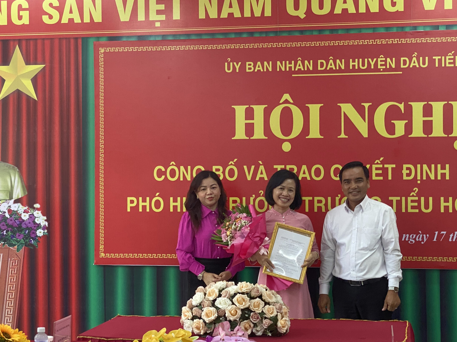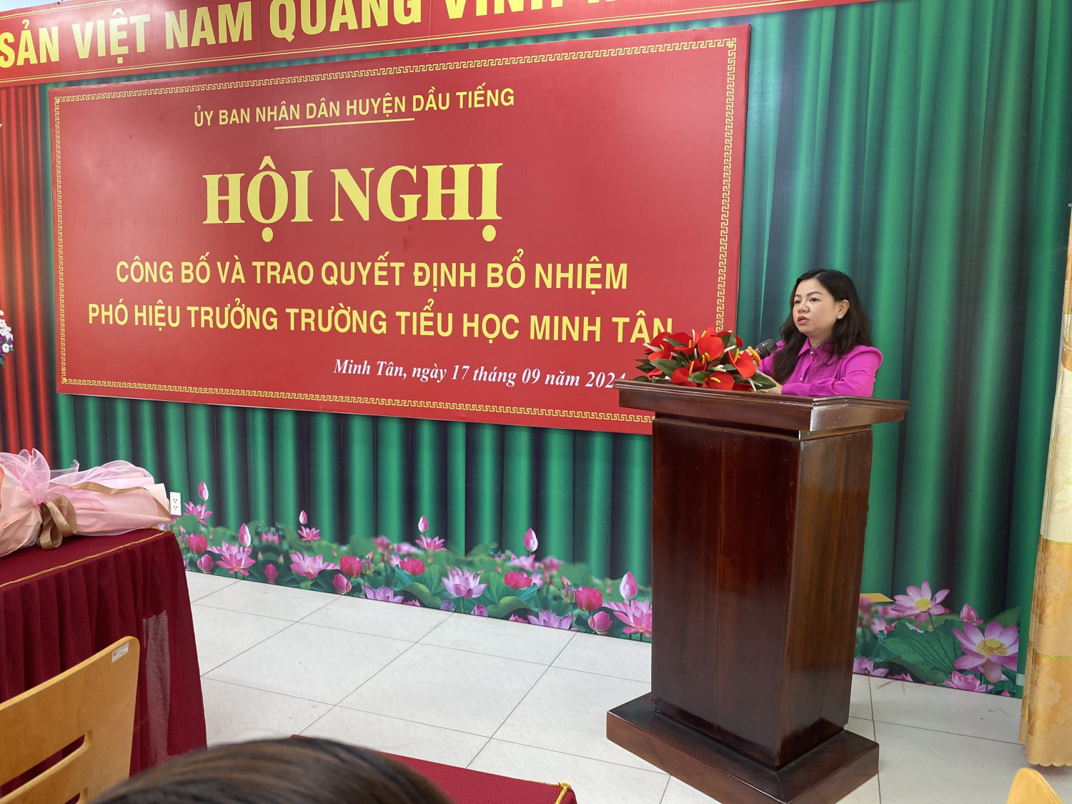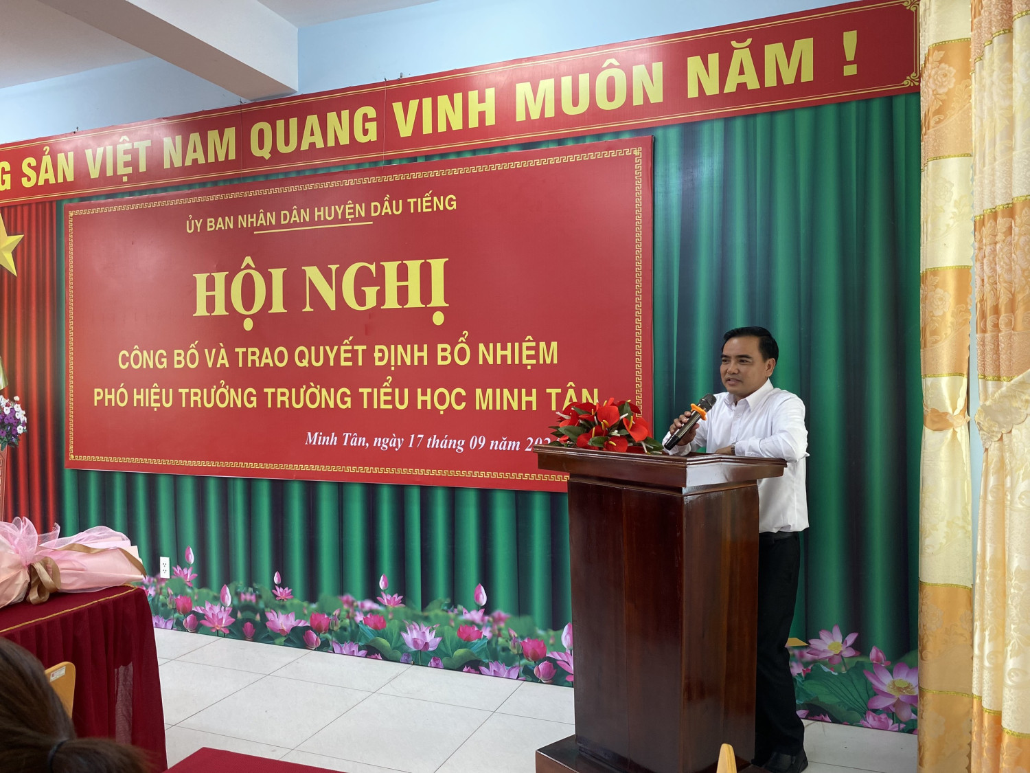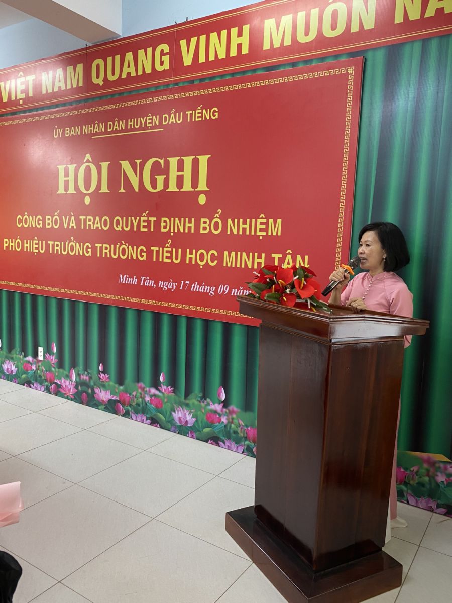 Hôm nay ngày 17/9/2024 được sự ủy quyền của Lãnh đạo Ủy ban nhân dân huyện Dầu Tiếng, Phòng nội vụ huyện Dầu Tiếng trường tiểu học Minh Tân tiến hành công bố quyết định viên chức Hoàng Thị Mỹ đến công tác tại trường Tiểu học Minh Tân